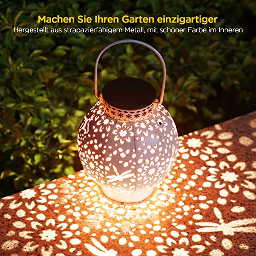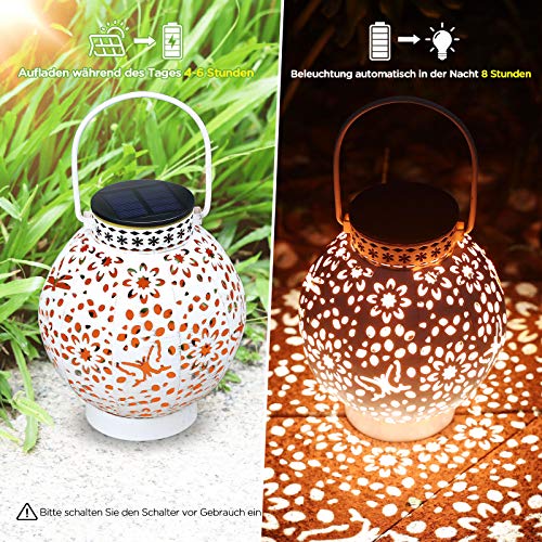 Wunderschönes Design: Diese schönen Garten deko Solarlaterne hat EU Patent(No 008585111-0001) strahlen nachts sanft gelb und zeigen ein lebendiges, hübsches Muster auf dem Tisch, dem Boden oder der Wand. Das antike Finish macht die Garten Solarleuchte mit ästhetischem Sinn einzigartiger. Verleihen Sie Ihrem Garten und Deck ein warmes und angenehmes Ambiente. Ideales Geschenk für Weihnachten, Halloween, Mutter oder Frauen!