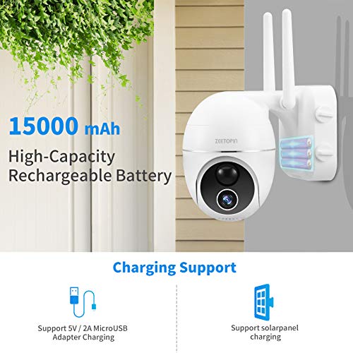 🌞🔋【Akku- od. Solarbetrieben und 100% Kabellos:】 Die Zeetopin WLAN-Überwachungskamera, die im Freien verwendet wird, verfügt über eine integrierte Batteriekapazität von bis zu 15000 mAh, die 180 Tage lang mit einer Ladung verwendet werden kann (die Alarmbenachrichtigung wird 15 Mal am Tag ausgelöst ). Ob bewölkt, regnerisch oder schneebedeckt, die Kamera kann normal arbeiten. Die 100% kabellose Kamera befreit Sie von Kabeln und Ladevorgängen und kann jederzeit installiert oder entfernt werden.